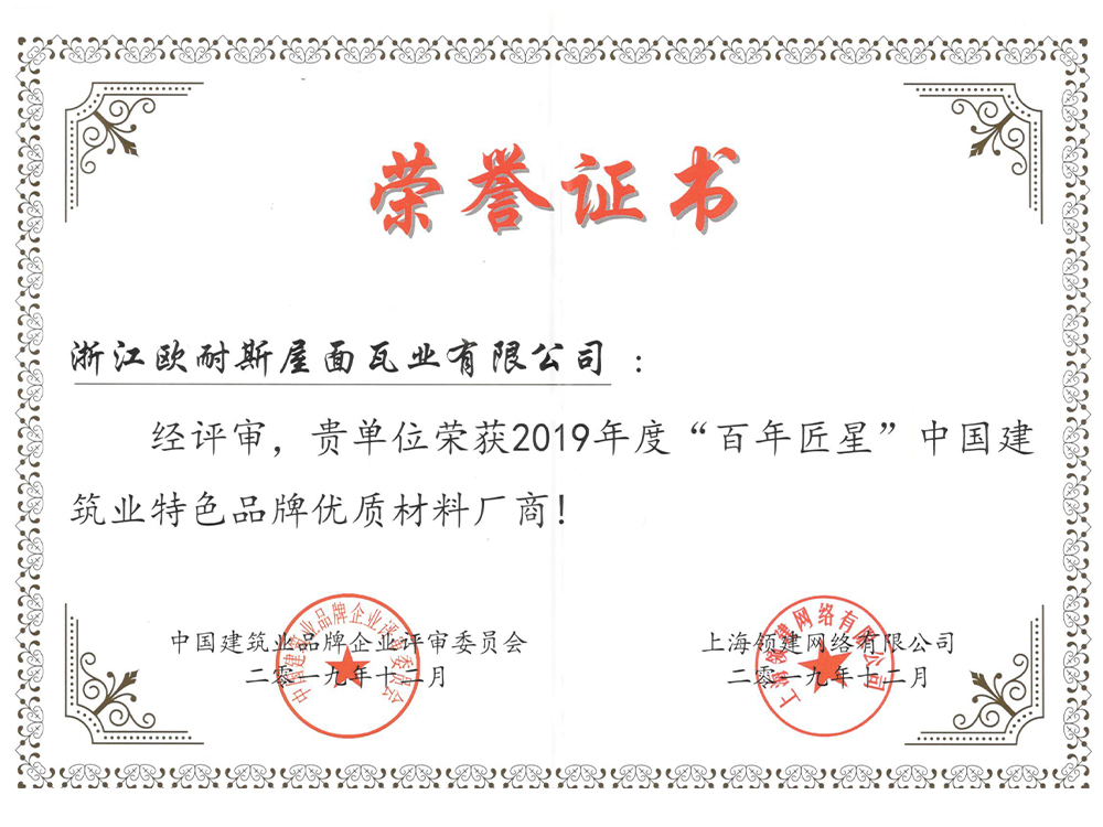 浙江歐耐斯屋面瓦業有限公司成立于1999年是一家集研發、生產、銷售和服務為一體的高新技術企業。公司憑借全國標品質的產品,銷售跟蹤式服務,在瀝青瓦行業內崛起。全公司現有員工60多人,銷售服務網絡覆蓋國內外150多個城市,年產量500萬平方。歐耐斯瓦業自成立以來,依托完善的法人治理結構,堅持技術創新、市場創新和管理創新之路,實現公司品牌化發展之路。
