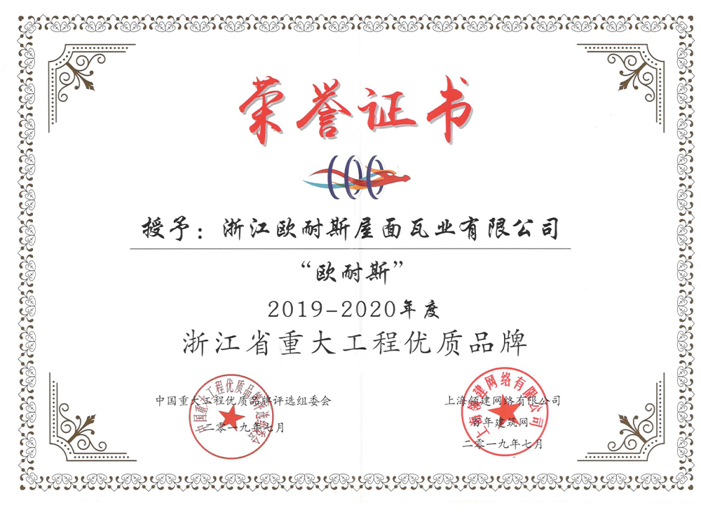 2019-2020年度浙江省重大工程優質品牌